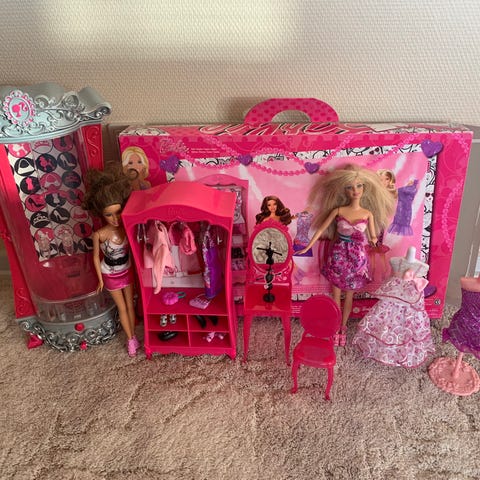 Sæt, hvor man kan lave tryk på sit eget tøj eller tøj til Barbie – der medfølger en bluse til Barbie, skabeloner, farve. Kun brugt én gang, så der er masser af farve tilbage. Instruktioner vedlagt.