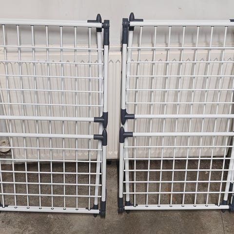 Har du brug for en smart og pladsbesparende måde at tørre tøj på? Jeg sælger et komplet sæt med seks IKEA tørrestativer, perfekt til små rum, bryggers eller garderobe.