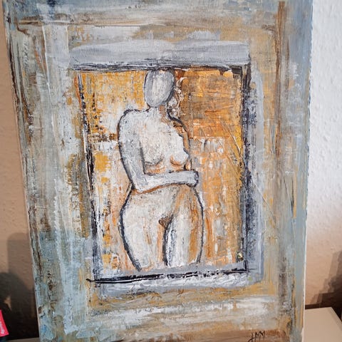Blandede medier, Ukendt tysk kvinde, motiv: Abstrakt, stil: Abstrakt, b: 1x40+2x20 h: 50cm, Abstrakt 3 delt maleri af tysk kvindelig kunstmaler.