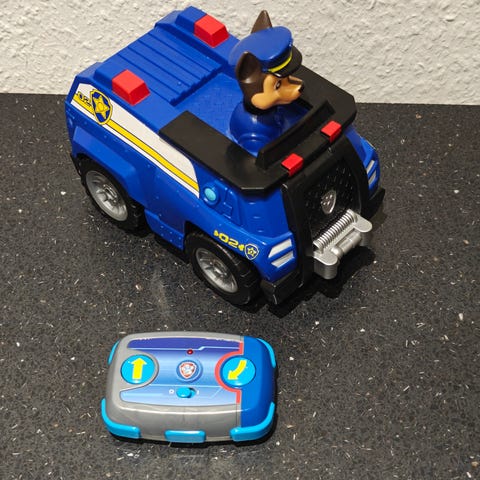 Fjernstyret Chase-bil med simpel fjernbetjening, som er nem at bruge for små børn.