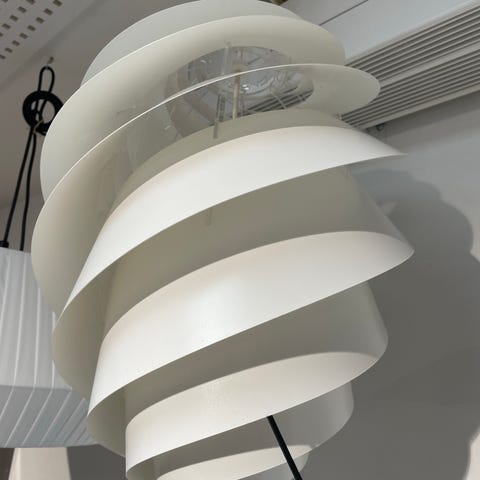 Le Klint Swirl 2 pendlen i den rene hvide farve er designet af Øivind Slaatto. Swirl pendel er resultatet af en perfekt kombination mellem det klassiske Le Klint design og et moderne twist. Med sit transparente formsprog og de svungne lameller, som fordeler lyset, giver lampen et fint brugslys og er tillige en æstetisk nydelse i rummet.