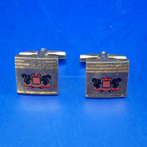 Manchetknapperne måler ca. 1.5cm*1cm, og er i god stand, dog er fogyldningen slidt af hist og pist.