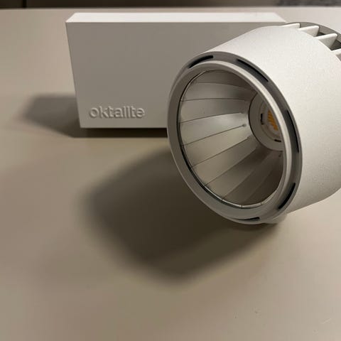 I flot stand. Det er kun den hvide ledning man får man/som passer til (jeg har bare lagt en helt anden ledning i samme æske).