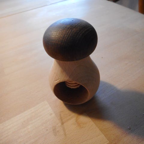 Hermed den ultimative vintage nøddeknækker i håndskåret birketræ. Meget få brugsspor. Stor model. 18 cm. 7 cm. bred. Fed juleting..
