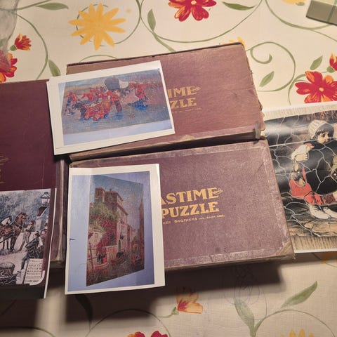 Vintage puslespil / jigsaw puzzle i rigtig god stand. Intakt med de 150 brikker. Motiv: Lassie-hund og dreng, der fisker. Engelsk titel: Waits for a Bite.