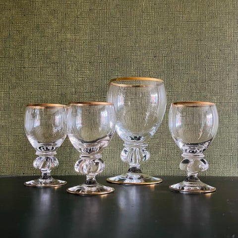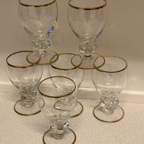 8 Stk Holmegaard Gisselfeldt grønne hvidvins glas i rigtig pæn stand sælges for 75,00 kr. pr. stk. De er alle i rigtig fin stand med begrænset slid på guld kanten. De er 11,5 cm høje og har en diameter på 6,8 cm.