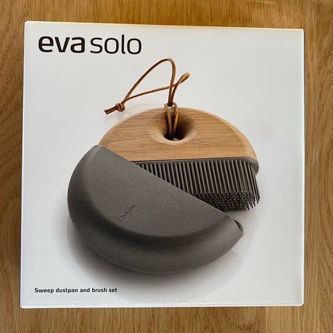 Smart og praktisk lille fejebakkesæt fra Eva Solo, der er udstyret med en læderstrop så sættet kan hænge. Kosten og fejebakken sidder sammen med et vakuum og kan derfor hænge uden frygt for at de falder fra hinanden. Fejebakkesættet er designet med det nordiske hjem i tankerne og det smukke håndtag i egetræ kombineret med bakken i det matte grå kunststof skaber et lille kunstværk og vil pynte i ethvert hjem.