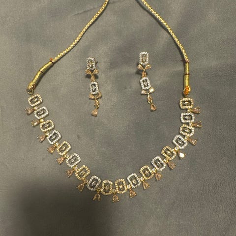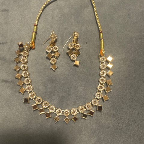 Sælger dette smukke guldfarvede smykkesæt bestående af: