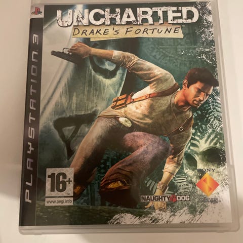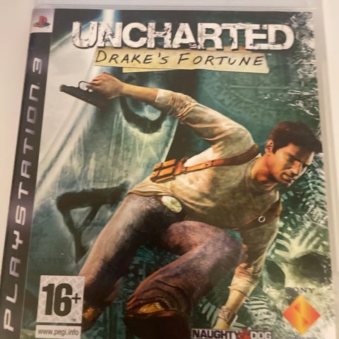 Uncharted Drake's Fortune Playstation 3 spil. Action-eventyrspil med fokus på opdagelse og kamp, udviklet af Naughty Dog. Spillet er til Playstation 3 konsollen og har en aldersanbefaling på 16 år og opefter.