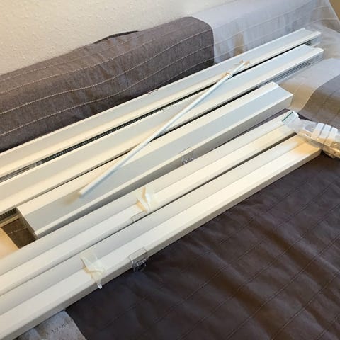 Hvide metal gardinskinner købt i Stof2000. Næsten som nye. Brugt ca. 1/2 år i et sommerhus.