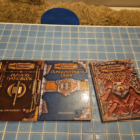 Dungeons & Dragons Player's Handbook Core Rulebook. This is a hardcover book containing the core rules for the Dungeons & Dragons role-playing game. It includes character creation, gameplay mechanics, and various rules necessary for playing. The book is in physical format with illustrated pages and detailed content for game sessions.