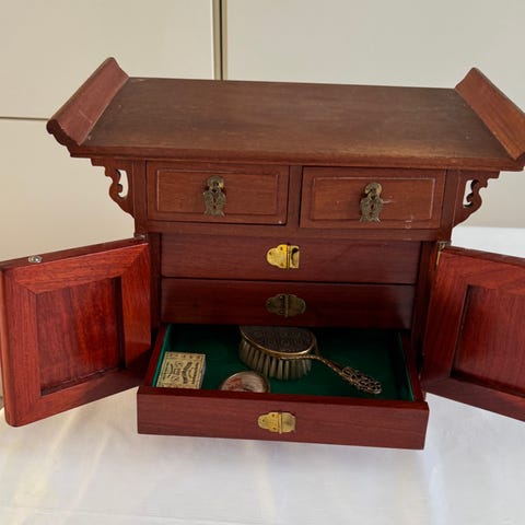 Lille smykkeskab i træ til børn. Med få brugsspor.