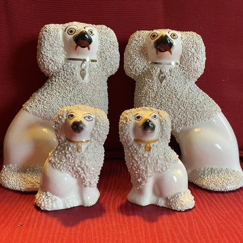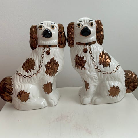 Wally dugs - Wallie dugs - Stafforshire hunde i Fajance - Antik