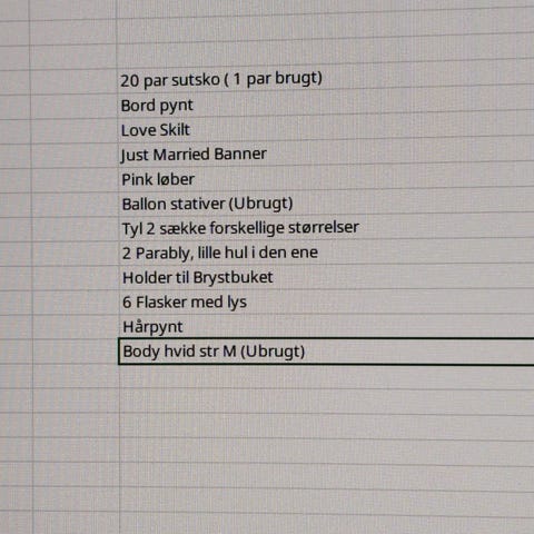 Efter skønt bryllup sælger vi ud af følgende ting: