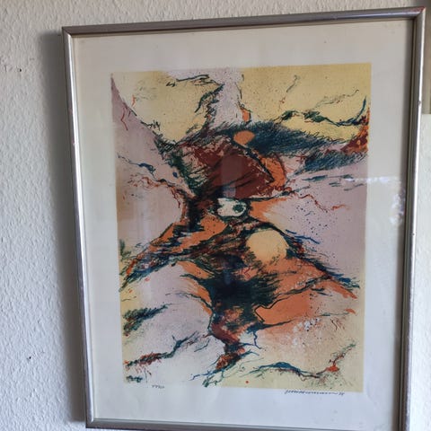 Samt lidt større. B.45cm-,H..56.0/motiv str i flot pad partout