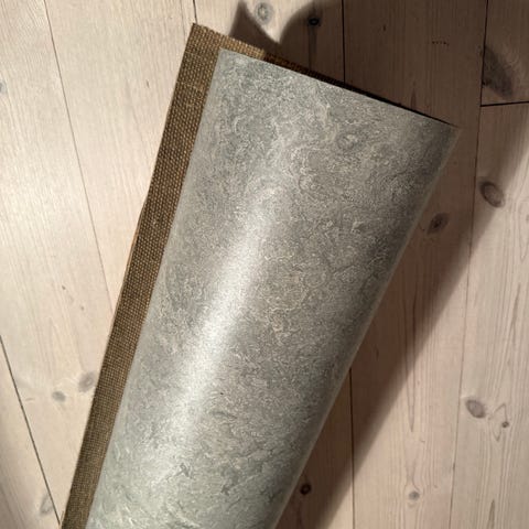 Rest, ubrugt - linoleumsgulv på 9 m2. Dyb mørkegrå - antracitgrå.