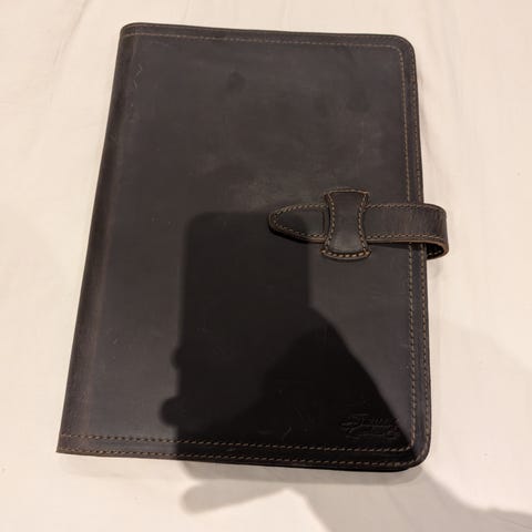 Saddleback leather, medium portfolio. Har plads til en a4 blok