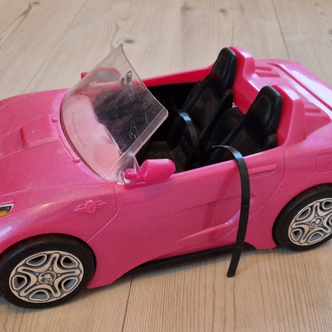 Barbie Eventyr Vogn Legetøj til børn i lyse farver med pink stel og grønne detaljer. Vognen har fire hjul og en lukket kabineformet krop, designet til leg og fantasi. Egnet som tilbehør til Barbie-dukker og rolleleg.
