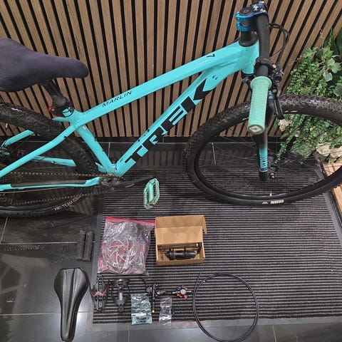 Aktuelt sat op til rytter omkring 165 cm og vil typisk passe ca. 160–175 cm. Klar til at køre direkte ud i skoven. Skriv for flere billeder eller prøvetur.