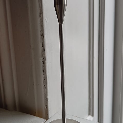 Piet Hein væg lysestage i rustfri stål i god stand H 29 cm.