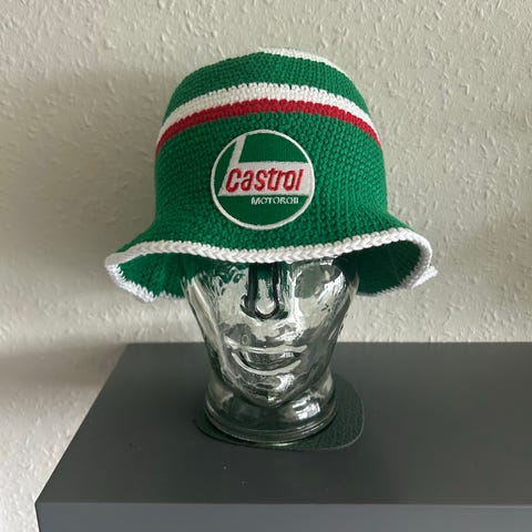 Hæklet Slots øl bøllehat efter egen opskrift og design. Fast pris kr. 300.