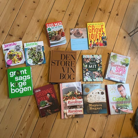 Kogebøger blandt andet Claus Meyer, spise med price og Jamie Oliver.