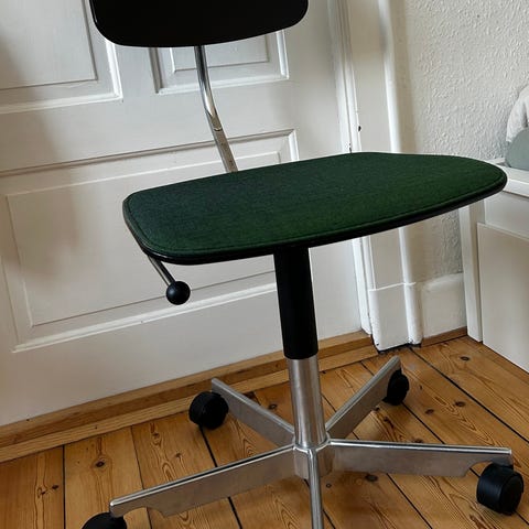 Original Kevi Office chair, designed by Jørgen Rasmussen. Seat fabric is very worn and should be changed, which is not that difficult to do. Foam inside seems to be in very good condition so that after changing the fabric the chair should be perfect again. All adjustments fully working and very good condition except the worn fabric. Only self pickup.