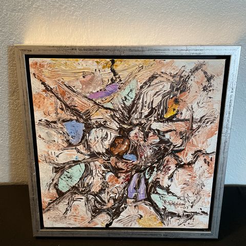 Ulrik har selv monteret det på rammen her i min stue. Kunne det komme til at sprede glæde et nyt sted, ville det være dejligt.