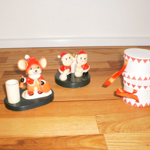 Skønne gamle julefigurer med træhoveder og filt / stof kroppe - herlig yo-yo / slaske effekt, når de hænges op - virkelig søde.