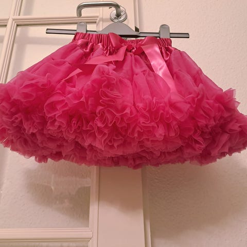 Str. 110-122 lyserød super fyldig nederdel/balletskørt i blød chiffon med elastik og sød sløjfe, som kan reguleres i livvidden.