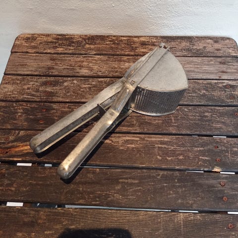 Solid kartoffelmoser i kraftig rustfrit stål.