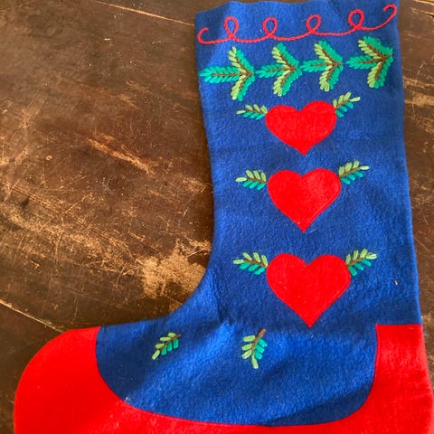 Gammel håndbroderet hør / jute Nissesok - Gavesok