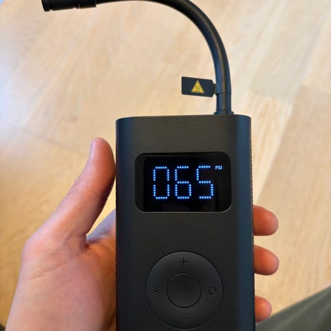 Driftstid (fuldt opladt): Ca. 20 min — kan oppuste 2 dæk 195/65R15 fra 0–30 PSI