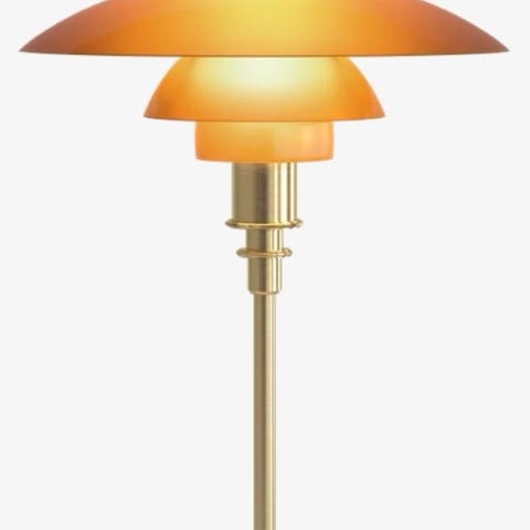 Uåbnet kasse - Louis Poulsen PH 3/2 ravfarvet glas med messing fod.