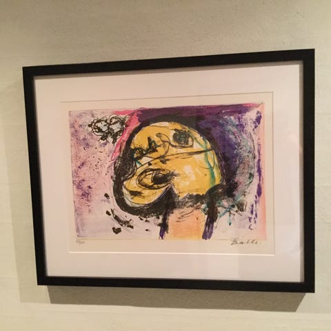Originalt litografi, Mogens Balle, motiv: Nær jord h: 77 b: 64 Mogens Erik Schack Balle var en autodidakt danske maler. Han havde tilknytning til kunstnergruppen ”Spiralen” og var en bekendt af Asger Jorn. Dette fik indflydelse på hans kunstneriske virke. Født 1921 i København og døde i november 1988 i Asminderup.