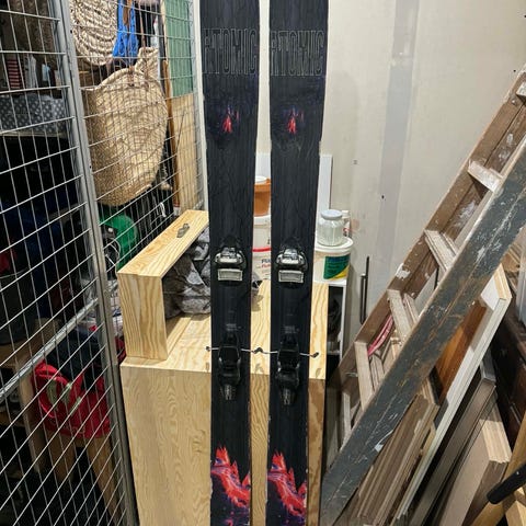 Der er monteret Marker Alpinist 12 med skistopper.