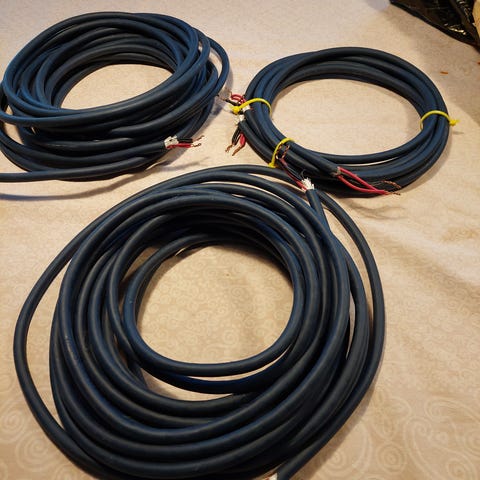 2 sæt af 2.5m til bi-wire af højttalere. Ved at fjerne bøjlen henover delefilteret bag på højttaleren og direkte til udgangs forstærker.