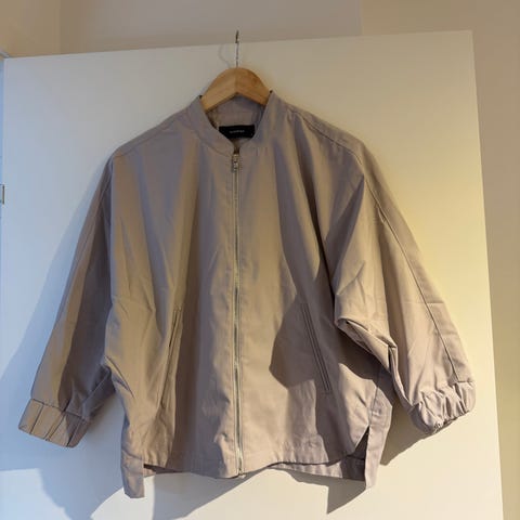 Smart kort jakke i flotte farver (sort, lilla, hvid, grå), lukkes med lynlås, med “høj” hals.