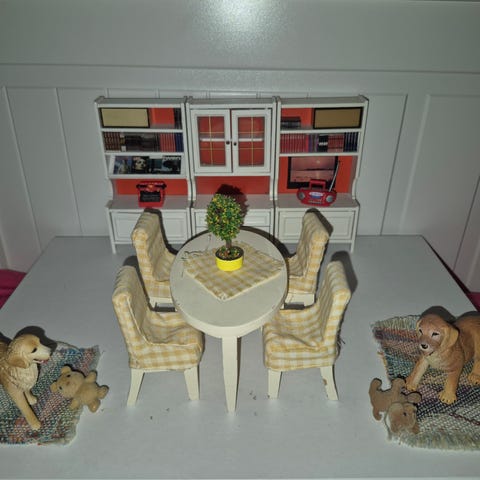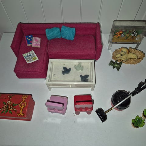 Lundby dukkehus møbler reoler piedestaler hund tæppe fuglebur planter tilbehør