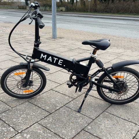 Sælger min Mate X el-cykel, som er i god stand og kører som en drøm. Cyklen har helt nyt batteri og oplader. Den er udstyret med dyt, horn, blinklys og normalt lys.