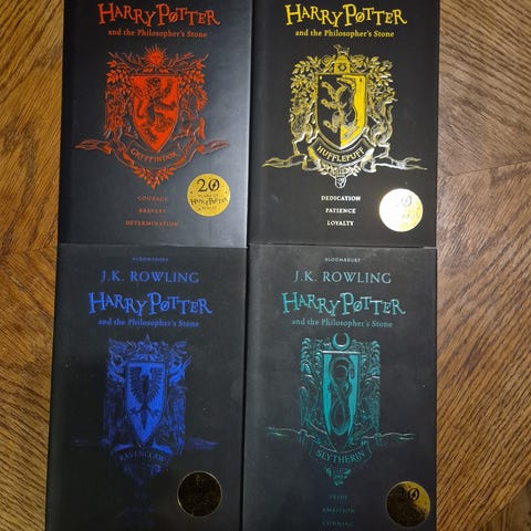Sæt bestående af fire ens bøger - én for hvert af de fire huse på Hogwarts. 20 års jubilæumsudgave.