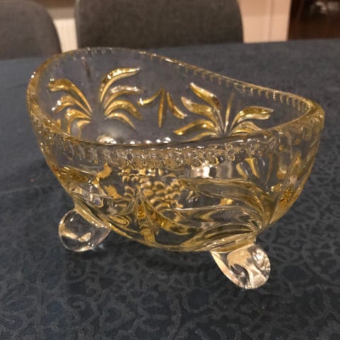 Utrolig smuk klar og mat, tung stor glasskål fra Walther glas, mrk. Marrakech.