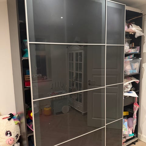 Stort og flot indbygningsskab med skydelåger sælges. Købt i JKE design. Flot og velholdt.