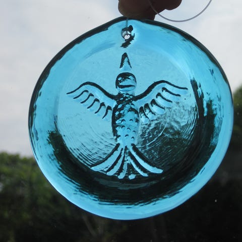 vintage solfanger sjælden auberginefarvet glas solfanger med lille ansigt