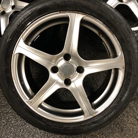 Dæk med mønster til et par sæsonger endnu, og fælge der ikke har været på kantsten. ET 42