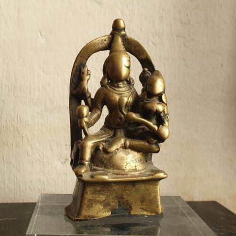 Sjælden ti armet Shiva på tyren Nandi fremstår i flot i forgyldt / patineret bronze.