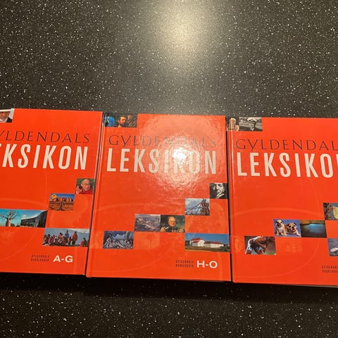 10 bind Gyldendals Leksikon.