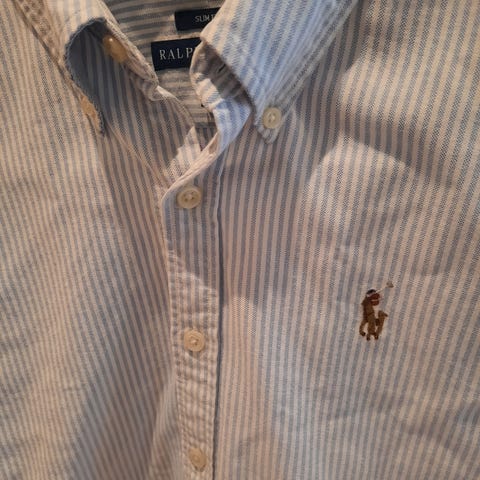 Ralph Lauren Skjorte i blå farve, størrelse S. Fremstillet til kvinder, designet med knaplukning og klassisk skjortestil.