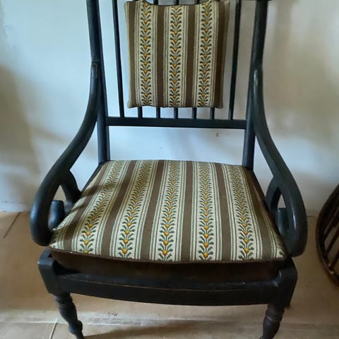 Empirestol med lyst grønt betræk, i fin stand