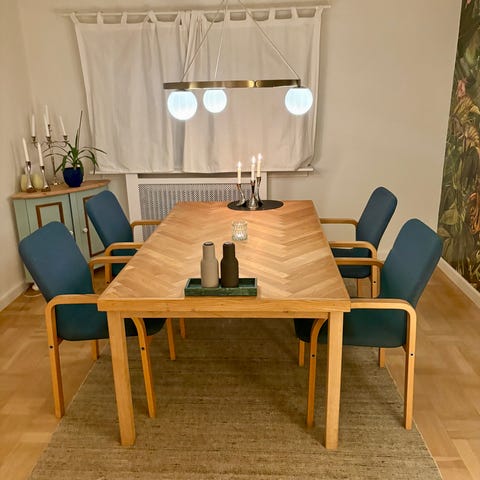 1 af stolene har et løs ben, så medmindre man kan finde ud af at sætte det på så er der kun 5 stole som virker fint